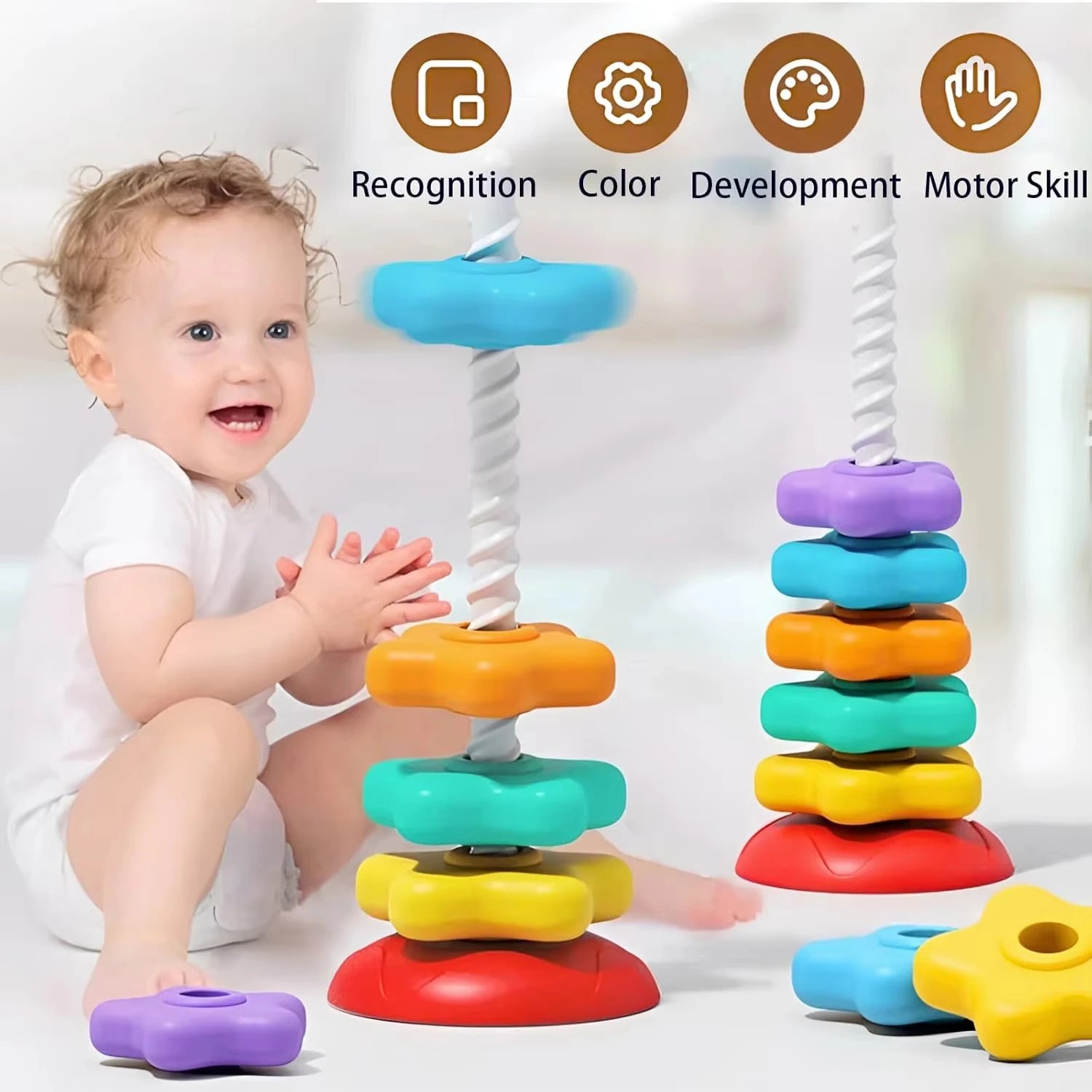 Montessori Early Learning Educational Sensory Toys For Baby: Baby Spinning Stacking Toys