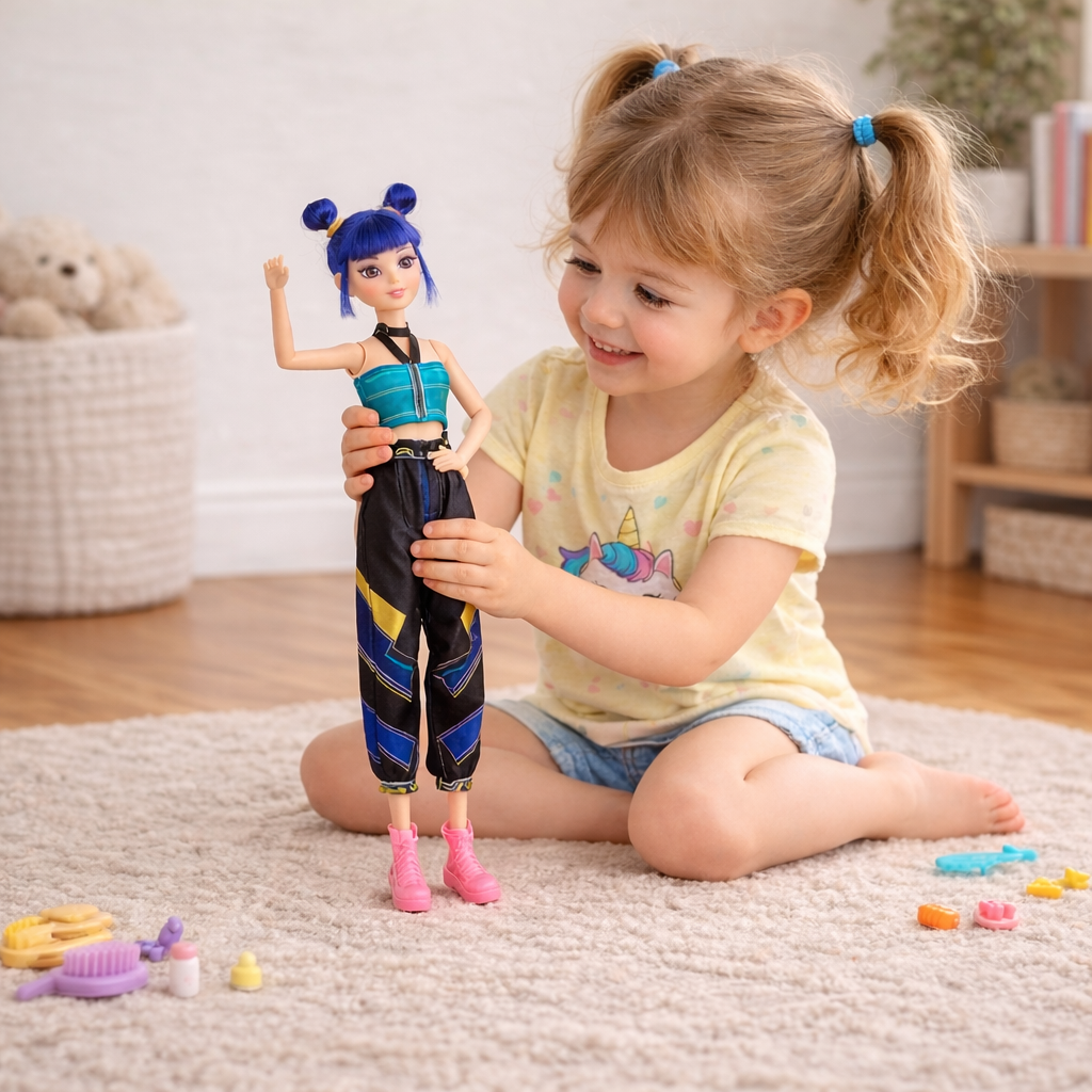 • Máxima Articulación: Esta muñeca cuenta con 11 articulaciones móviles, lo que permite una amplia gama de movimientos para posar de forma realista durante el juego o para exhibición.