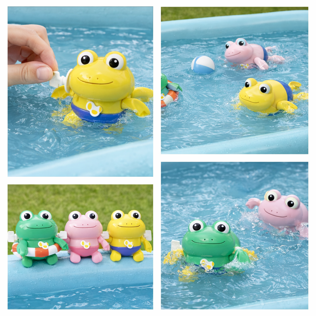• Diversão na Água: Esses sapinhos fofos transformam a hora do banho em uma aventura aquática. Graças ao mecanismo de corda, eles podem nadar de forma autônoma na banheira ou piscina.
